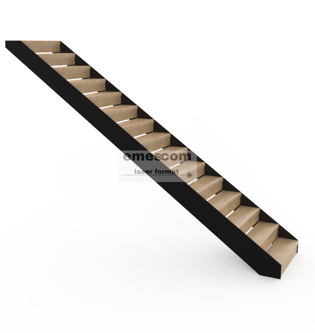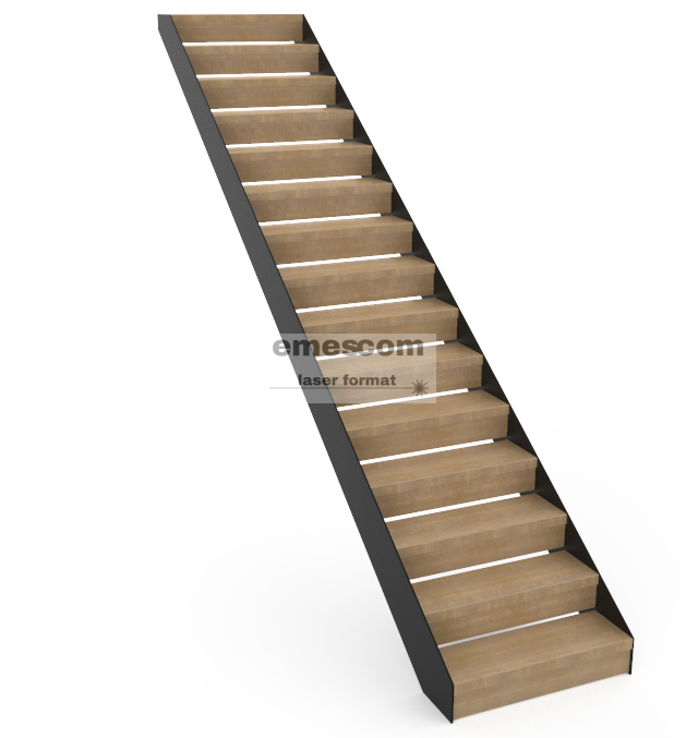 Schody wykonane z blachy stalowej ciętej laserem. Stopnie wykonane z wysokiej jakości drewna dębowego lub bukowego, co gwarantuje elegancki wygląd i naturalną teksturę.
